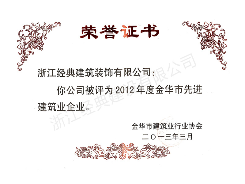 2012年度金華市先進建筑業(yè)企...