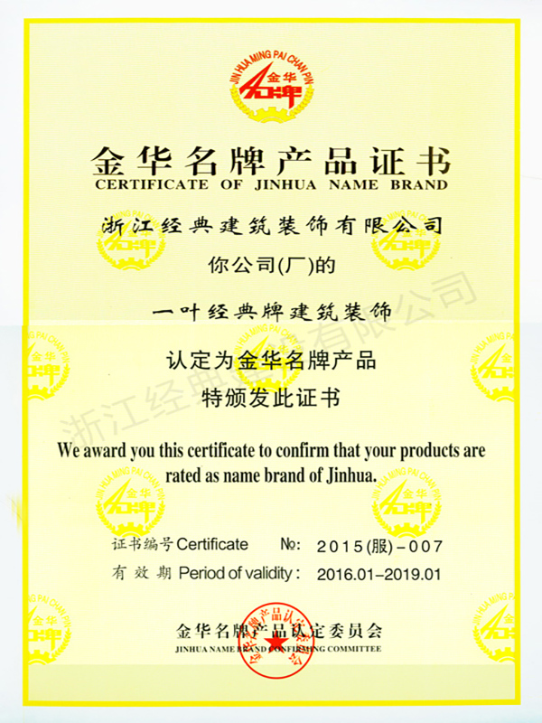 一葉經(jīng)典牌建筑裝飾金華名牌產(chǎn)品...